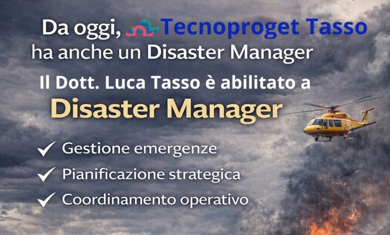 Tecnoproget Tasso annuncia un importante potenziamento della propria area dedicata alla gestione delle emergenze: il Dott. Luca Tasso assume ufficialmente il ruolo di Disaster Manager, ampliando le competenze dell’azienda nella pianificazione e nella gestione degli scenari critici.